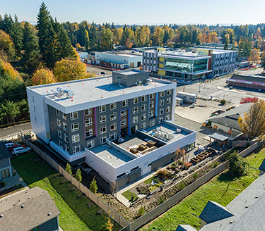 The Low Income Housing Institute yesterday opened its latest project — a five-story building in Olympia that has 65 permanent supportive housing units for homeless people and a 58-bed enhanced shelter on the ground floor. The project is called Unity Commons and is at 161 Pattison St. N.E.