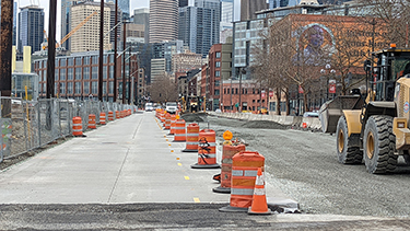 On one WSDOT project, Scarsella Brothers ran out of concrete in the middle of paving new lanes for First Avenue South near the stadiums in Seattle. After sitting for weeks, Scarsella has resequenced the work, opting to lay down temporary asphalt where concrete was planned. This will help keep the project on schedule, open a closed lane to traffic and keep workers busy while waiting for concrete to return. The project is part of the final roadway work around the south portal of the new state Route 99 tunnel.