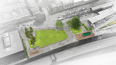 A major part of the project will involve replacing the waterproofing membrane under the half of the park that sits atop a privately owned parking garage. This membrane has been leaking for a number of years and is failing. Installation of the new membrane will require removing the westerly portion of the park over the garage.