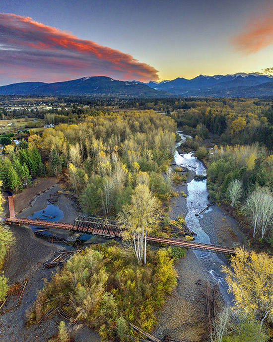 Randy Johnson, habitat program manager for the Jamestown S’Klallam Tribe, said: “Aesthetically and functionally, the bridge is superb. We are thrilled with the innovative wishbone design, and the flow of traffic merges and splits seamlessly. The Tribe routinely receives rave reviews about the bridge from trail and Nature Center users. Environmentally, the project has surpassed the Tribe’s expectations. The design team integrated a marvelous side channel and 11 engineered logjams into the project, creating highly productive salmon habitat on the reconnected floodplain.
