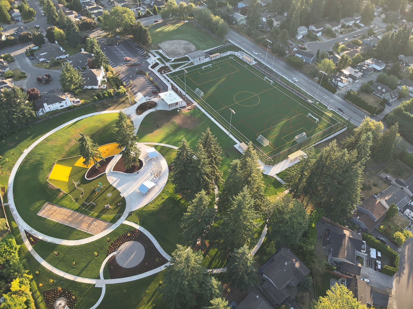 The original park had limited facilities and a poorly drained field that reduced its usable season. After Kirkland’s 2011 annexation of the Kingsgate neighborhood, redevelopment of the park was a priority to develop equitable access to recreation amenities in an underserved and growing area. However, funding was another matter.