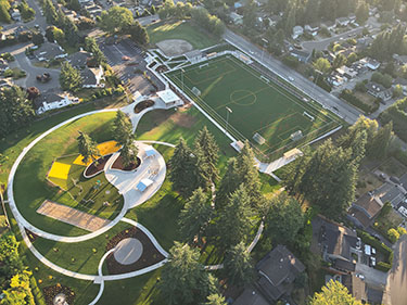132nd Square Park is a 10-acre park nestled in the Kingsgate neighborhood in northeast Kirkland. Today, the park boasts state-of-the-art facilities, including updated multi-purpose turf fields, expanded restrooms, and inclusive playgrounds that serve a wide range of cognitive and physical abilities.