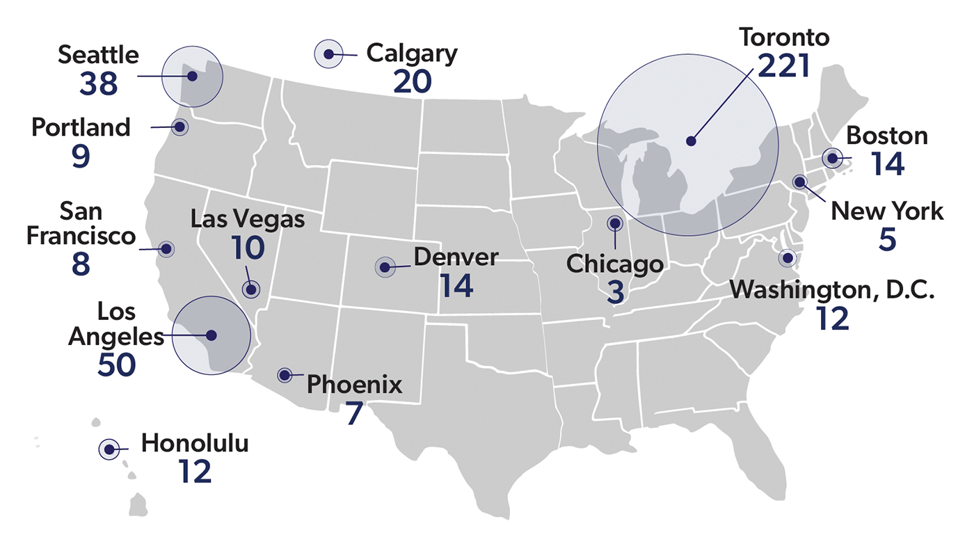 The number of fixed cranes at work on construction projects across North America dropped by 9% over the third quarter of 2023, according to construction consultant Rider Levett Bucknall. Seattle shed seven cranes during the period and now has 38 at work.