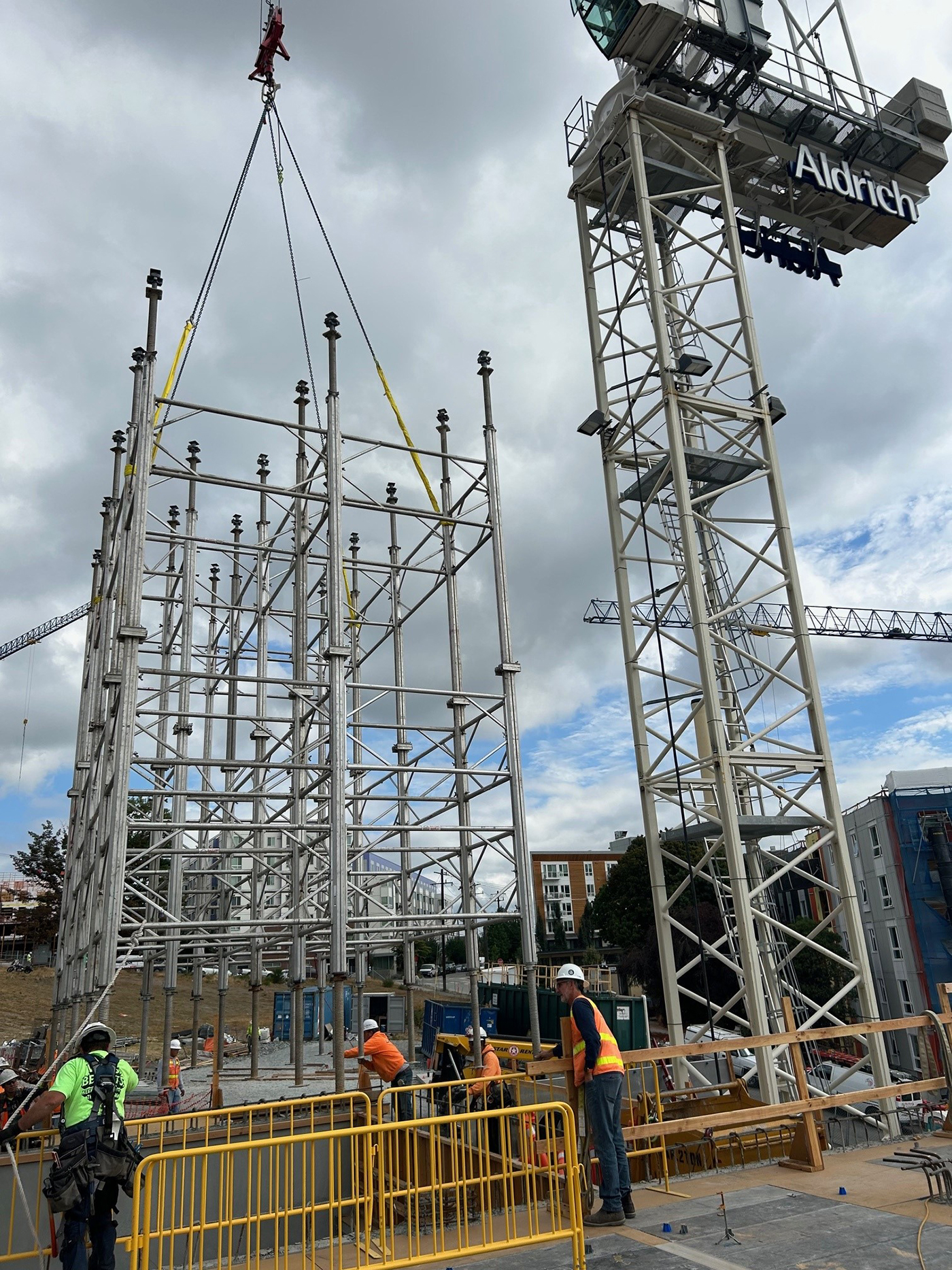 Field teams, led by long-time Aldrich Superintendent Andrew Murphy, preassembled the shoring poles into sections and each pre-assembly was lowered into place with surgical precision. This innovative approach provided a safe and stable environment for workers, created efficiency, and saved time.