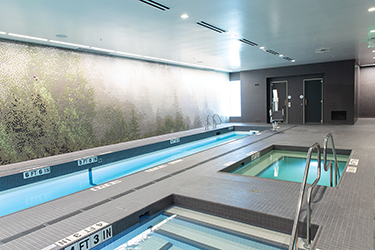 From a design standpoint, we focused on efficiency by streamlining the players’ movements between spaces and eliminating corridors. For example, from the trainer’s area you can see everything from the aquatics room to the treatment tables, through the strength and conditioning space and out to the courts. The idea is that at any given moment, the trainers, physicians, and other staff monitoring the health of the players can see them, connect with them, and anticipate their needs while assuring player safety.