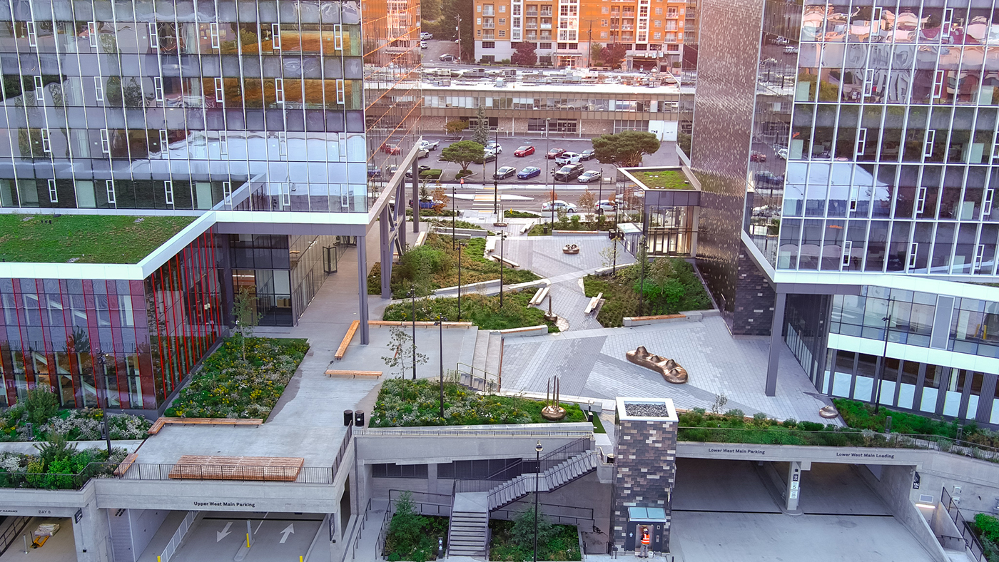 The natural and human-made elements at West Main combine to form a vibrant urban sanctuary. Expertly crafted by award-winning landscape architecture firm GGN, the garden serves as a strong landscape frame, connecting the three towers. This integration of architecture and landscape offers a diverse range of experiences, enriching the public realm from the sidewalk to the buildings. Native meadow plants infuse the space with colors and textures, reaffirming Bellevue’s ecological character in its downtown core.