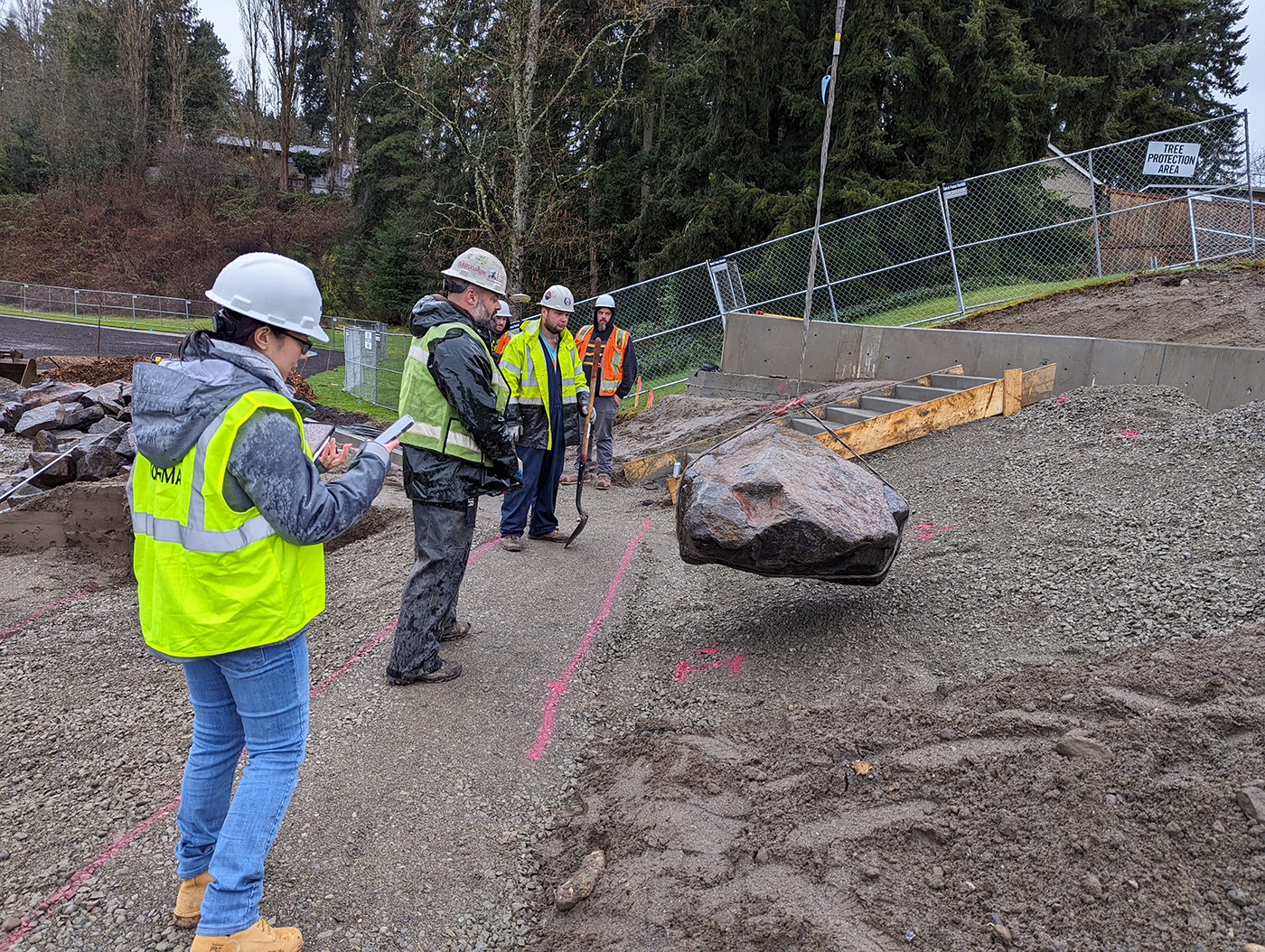 To deliver a consistent message from the design and contractor team about building design quality, we normalized conversations with all team members about design priorities. “We carved out time with everybody to discuss design goals at the very beginning.” said Kasia Keeley, Mithun’s project manager for the park design team. “It was necessary to have something to point to as we went through the process. At the pace of project delivery, we could check in together while construction was underway and additional requests were being made.”