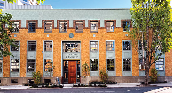 Built in 1942 in Seattle’s historic Belltown neighborhood, the Labor Temple was built from a need for the city’s dock workers to have a meeting place. It stands as a beacon to those hard-fought decades in American labor history when organization among workers was paramount. GK Knutson and the Pacific Northwest Regional Council of Carpenters is proud to have worked on the newly restored facility that features 62 private offices, membership workspace, retail opportunities, a rooftop terrace and an interior/exterior courtyard lounge.