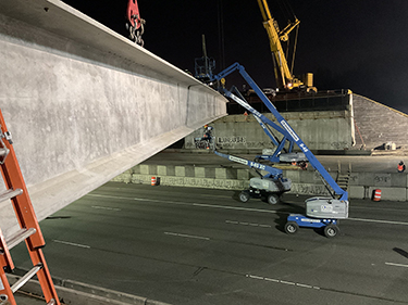 Crews have been at work setting the 15 girders for a new bridge that will carry the future SR-167 expressway over I-5 at the Fife curve.