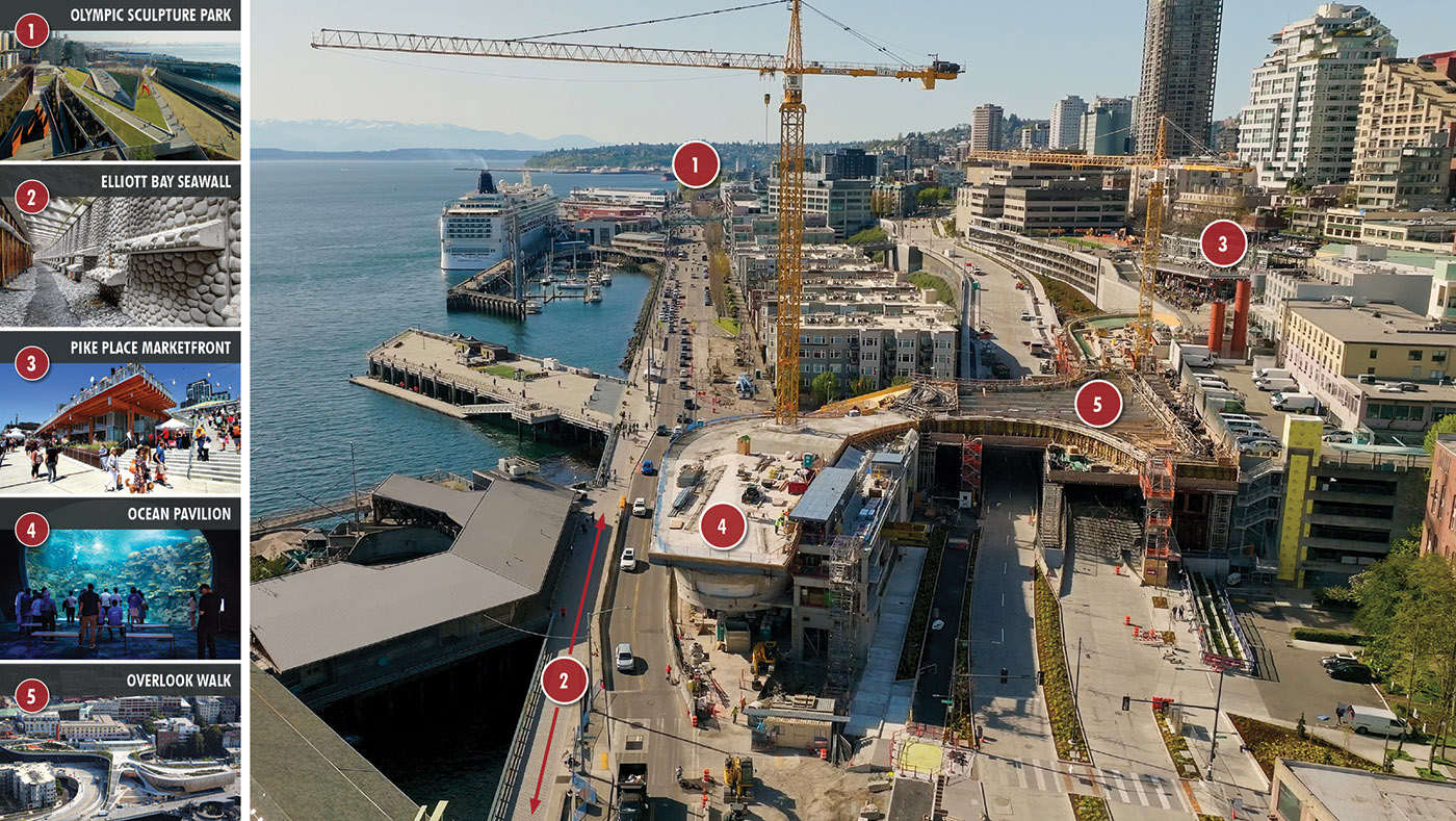 “The Seawall was the start of what we now understand to be the reimagined waterfront, as the previous seawall had reached the end of its useful life after protecting the city for more than 70 years,” Jones continued. “The new Seawall was designed to protect the city for the next century as it was brought up to current seismic standards, accounts for projected sea level rise, and provides marine habitat.”
