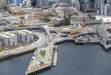 These efforts included a reimagination of the connection between Pike Place Market and the Seattle Aquarium. Together with the city of Seattle, valuable public input, and boards and commissions, this team envisioned and delivered Overlook Walk, which is open to the public today.