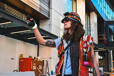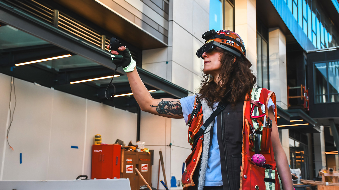 JTM Assistant Superintendent Carolyn Stovall is shown using the Magic Leap 2 augmented reality headset, which renders 3D models for coordination in the built environment.