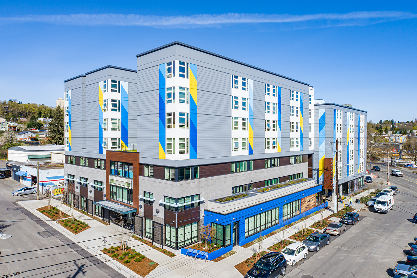 Developed by Downtown Emergency Services Center (DESC) and Lotus Development, the project is the first permanent supportive housing (PSH) development in Washington State to receive Passive House Institute US (Phius) certification. The project combines independent living with wrap-around services, including a 24,000-square-foot primary and behavioral healthcare center that serves the building’s residents and the local community.