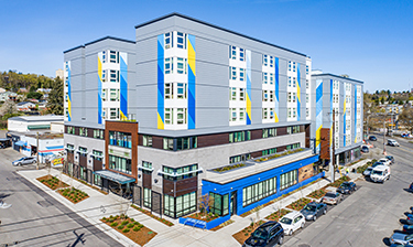 Located in Seattle’s North Rainier Hub Urban Village within a few blocks of the soon-to-open Judkins Park Light Rail station, Hobson Place is a permanent supportive housing development that provides homes and comprehensive services for 177 individuals experiencing homelessness and disabilities.