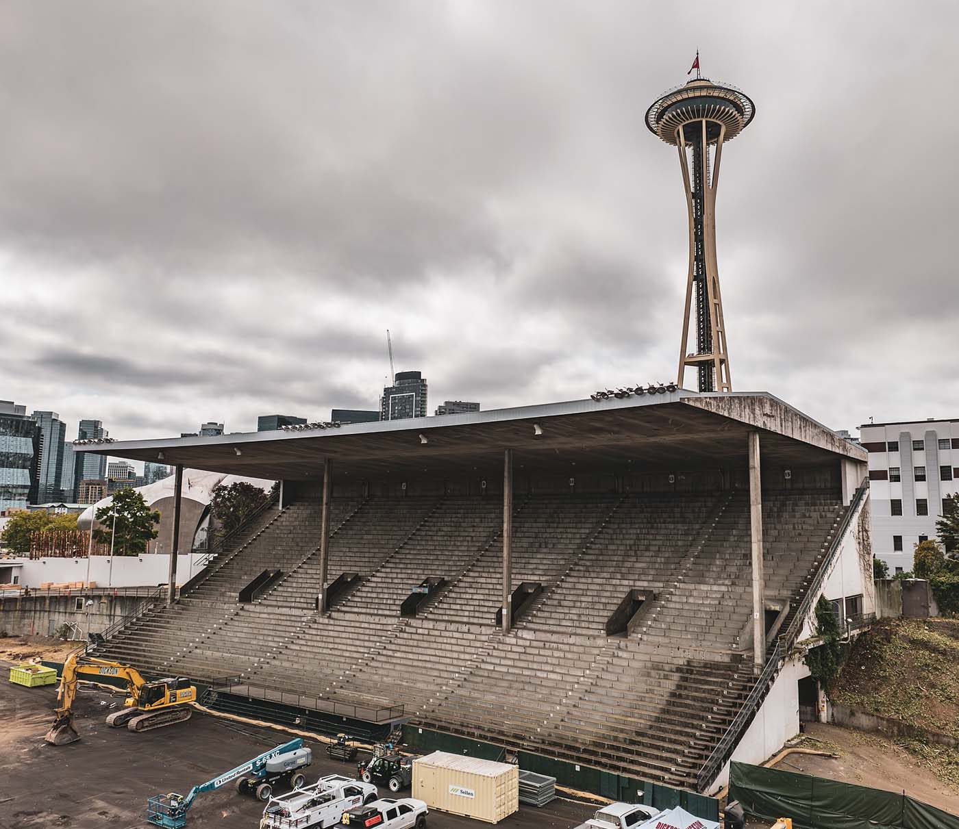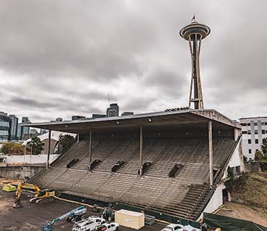 Demolition of the historic Memorial Stadium at Seattle Center began Tuesday.