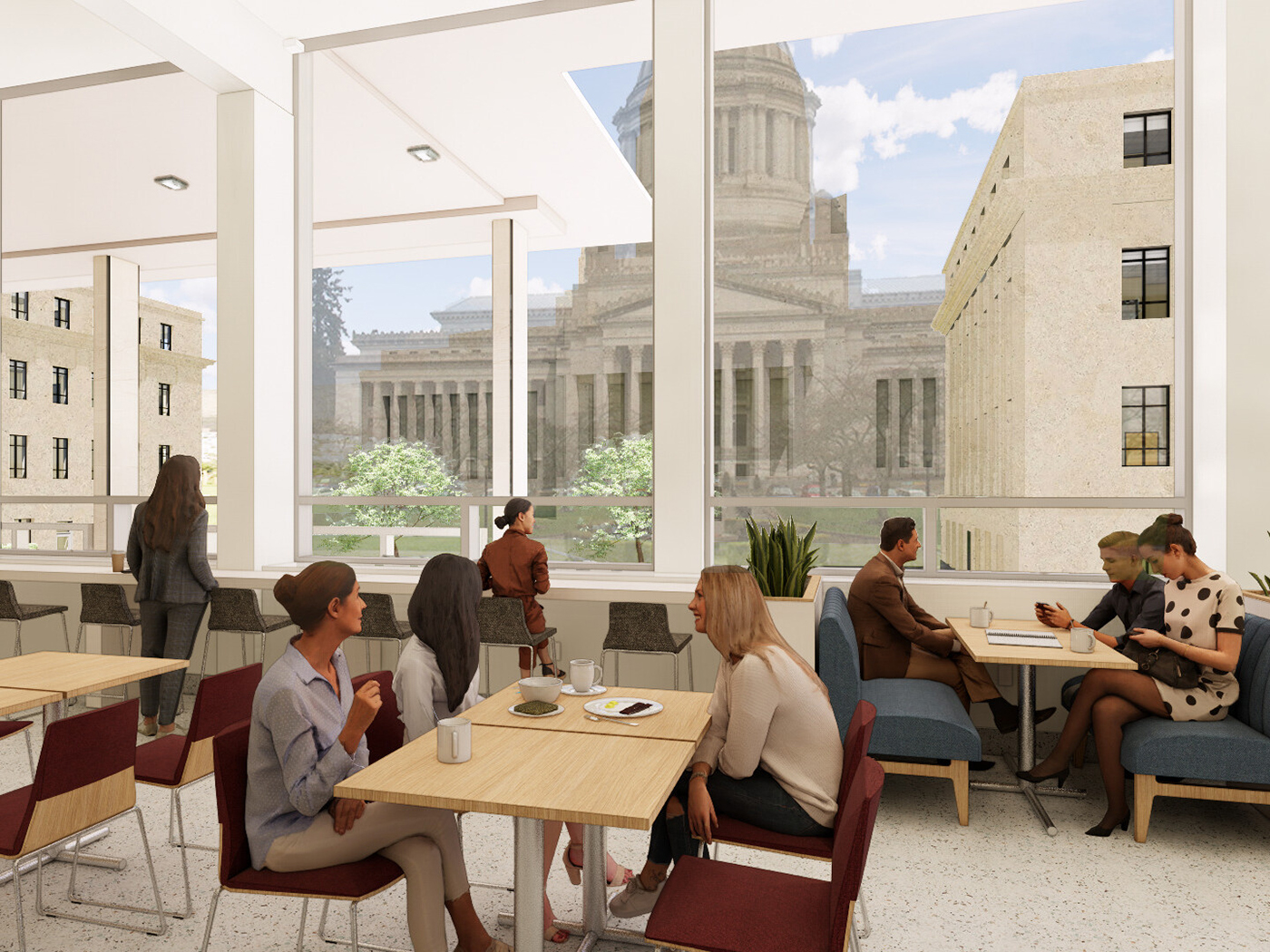 Design firm DLR Group and general contractor/construction manager BNBuilders held a topping out celebration for the $106 million rehabilitation and expansion of the mid-century modern landmark. The project is headed by the Washington Department of Enterprise Services (DES).