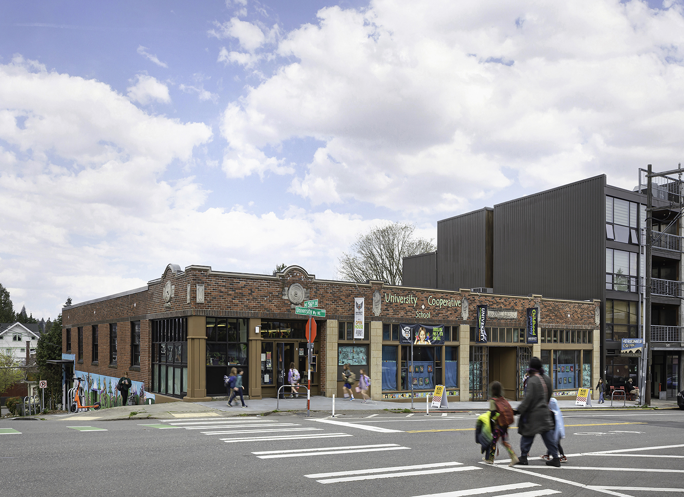 The University Cooperative School (UCoop) is a progressive learning environment serving pre-K through 5th-grade students in Seattle’s North University District. The school inhabits the historic Maxwell Auto Garage, a 100-year-old landmark that embodies the character of the surrounding neighborhood. The adaptive reuse of the building brings pride to the school in both preserving history and shaping its future.