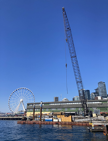 If you've walked along the central Seattle waterfront in the last few weeks, you may have noticed an on-barge crane working in Elliott Bay near Argosy Cruises and Starbucks.
