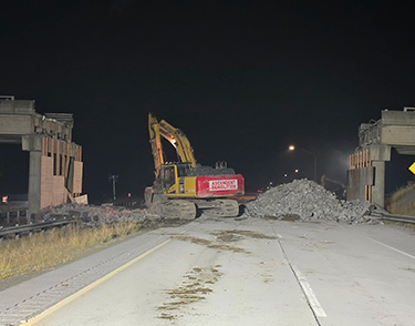 Ascendent Demolition of Puyallup performed the demolition of the overpass under prime contractor Scarsella Bros. Inc. of Kent, hired by the Washington State Department of Transportation under and emergency contract Thursday.