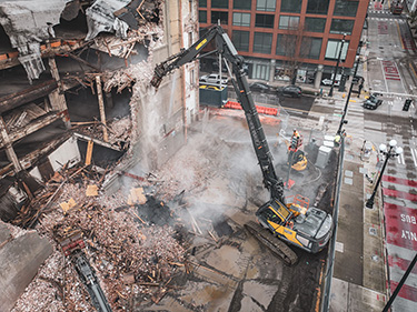 Urban Renaissance Group is in charge of the demolition, working with BNBuilders; architect Perkins&Will; Dickson Demolition and Abatement of Tacoma; and Coughlin Porter Lundeen, the civil engineer.