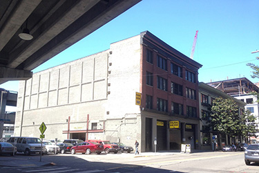 The complex's south structure, next to the small lot on Columbia Street, was long used for parking. The north Commuter Building was for years office space for Windermere Real Estate, with Dania selling furniture below.