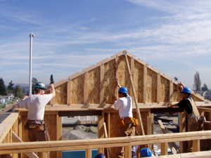 A Habitat for Humanity construction manager works with YouthBuild students at a jobsite in Seattle’s NewHolly neighborhood.