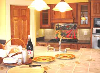 Pacifica Tile Art Studio embeds a wide range of images, such as this scene of the German countryside, by August Macke.
