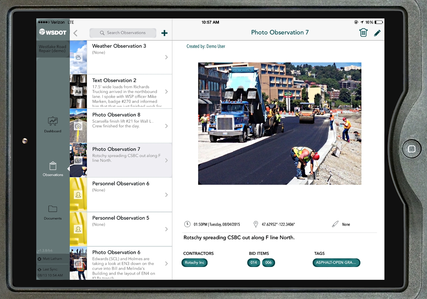 Road inspections are typically done with pencil and paper and are supplemented with photos. Inspectors then head to the office to type up notes and file daily reports.
