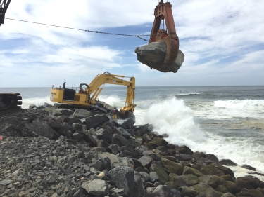 Contractors this time around have higher quality rock — rock that can better endure the tough environment. In addition, they know the jetty's durability has more to do with how well the rock is placed. The days of dumping are over.