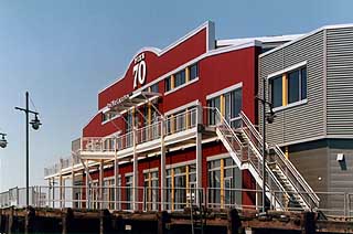 The architects created a contemporary interpretation of the working waterfront, creating an interplay between traditional pier building forms and nautical and shipping references.