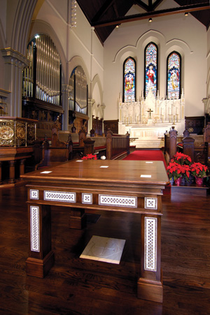 Improvements include a new sound system and lighting. The chancel was reconfigured and the organ was rebuilt.