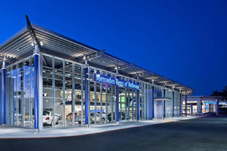 The addition includes a showroom, customer lounge, enclosed service drive, offices, and training and conference room. The service area was remodeled to meet Mercedes-Benz operations criteria and design requirements.