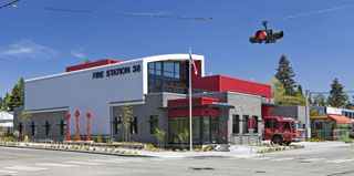 Seattle Fire Station 38 is located on a reclaimed brownfield in the Hawthorne Hills neighborhood, and replaces a historic single-truck station.