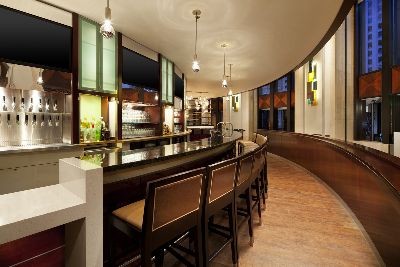 The restaurant and bar offers re-invented American cuisine. It is open daily from 6:30 a.m. to 11 p.m.