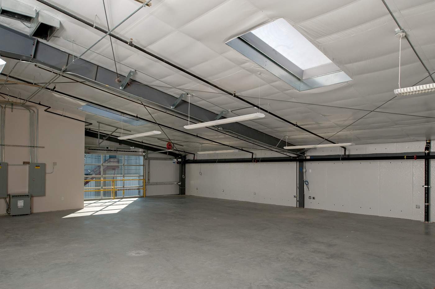 The two-story, 25,000-square-foot Varco-Pruden metal building houses offices and shop space. Four bays have roll-up doors and there is loft space for the offices.