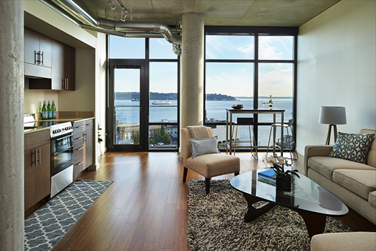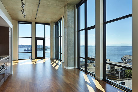 The building has a library, private guest suite for visitors, bicycle workshop and storage, rooftop pet walk and deck with views of Elliott Bay.