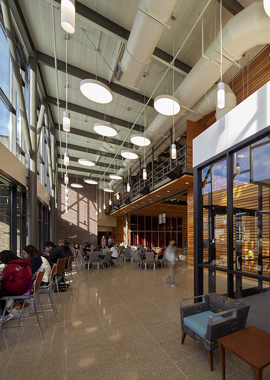 It houses a bookstore, food service, meeting rooms and staff spaces for student government, recreation, conference services and athletics. It also has the college's first fitness center.