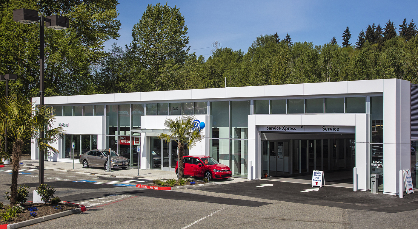 The old 32,000-square-foot Toyota of Kirkland showroom and service center at 12612 N.E. 124th St. has been transformed into the new Volkswagen of Kirkland.