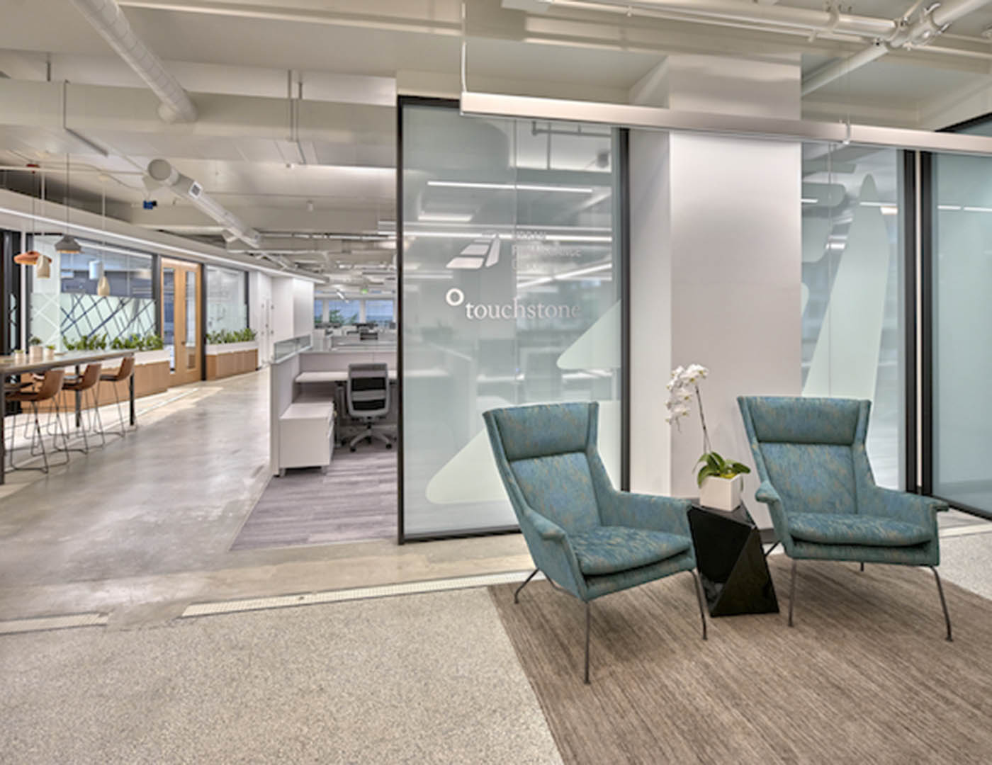 The new space was switched from retail to office use. The design focused on revealing the original architecture, while taking advantage of expansive windows and large skylights.