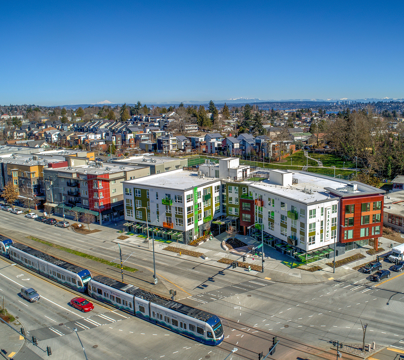 Sonata East is a four-story mixed-use building at 3004 S. Alaska St., in Seattle's Columbia City neighborhood.