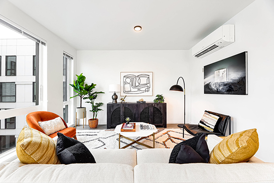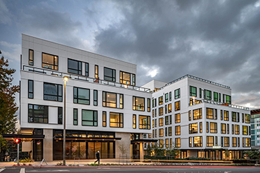 The six-story, 125-unit building has studios to three-bedrooms. A one-bedroom with 801 square feet is listed at $4,326 per month. Smaller one-bedrooms on lower floors go for $2,721 per month. Resident amenities include air conditioning, a roof deck, gym, bike room, package room, pet washing area and community lounge.