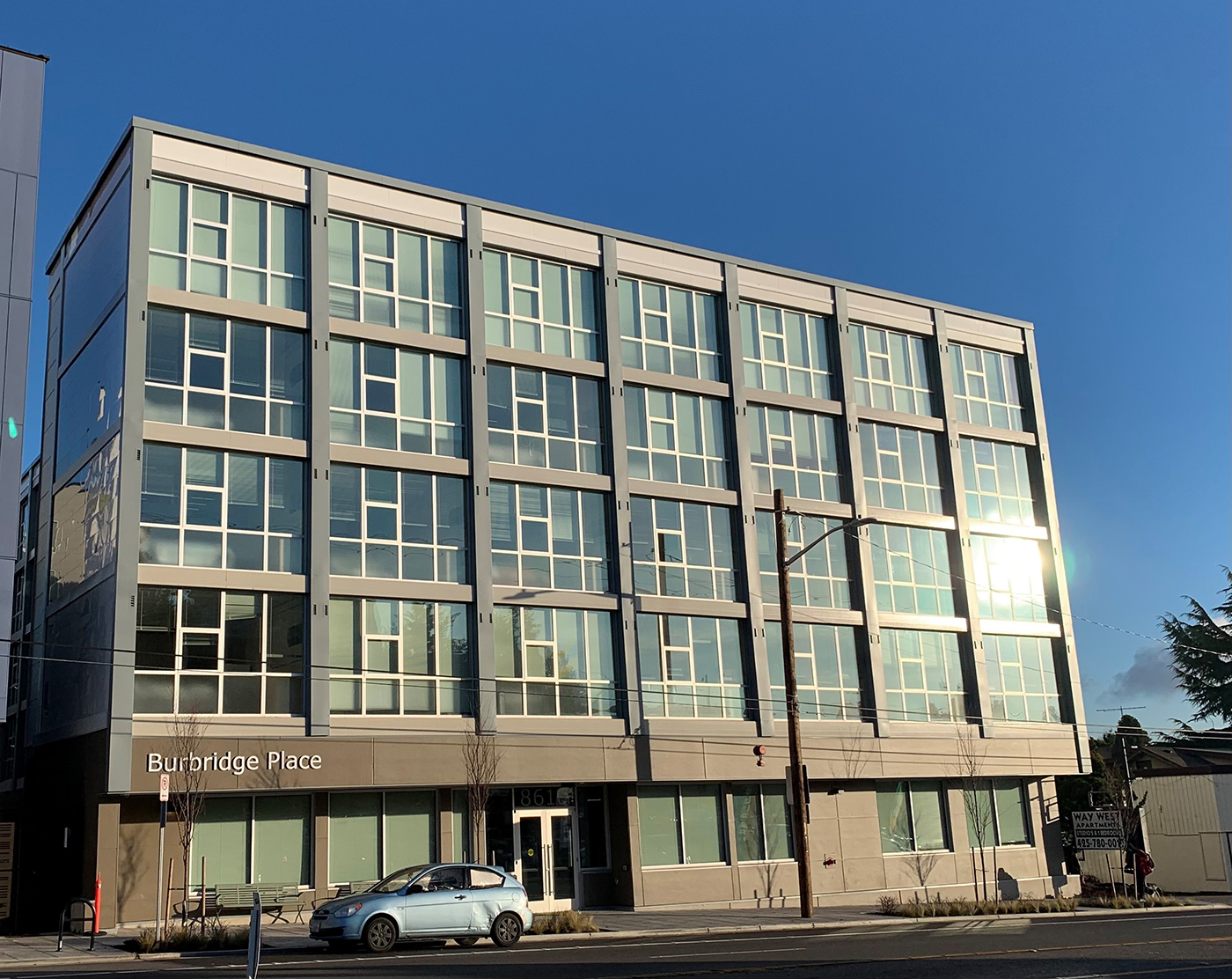 Burbridge Place is a new five-story affordable housing building located close to public transit at 8610 Aurora Ave. N.