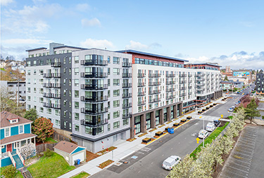 The recently opened Rook Apartments cover a half-block in downtown Tacoma’s Brewery District.