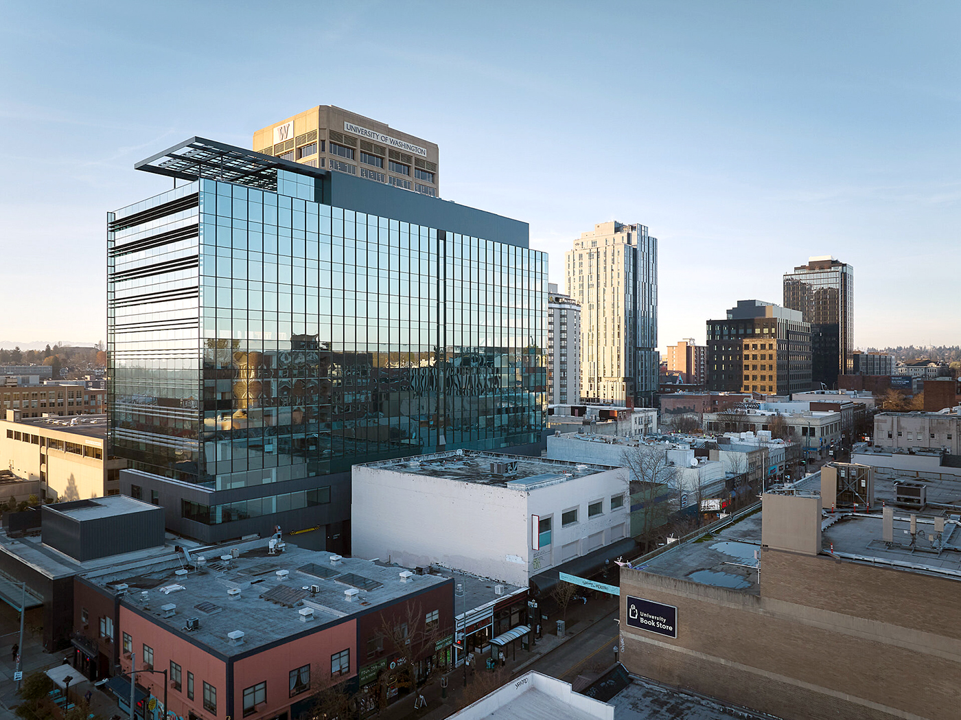The University District Station Building is a 13-story office tower that sits directly atop the U District light rail station at 4328 Brooklyn Ave. N.E.
