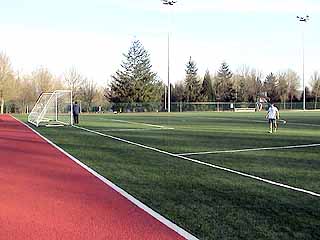Environmental constraints Perrigo Park in Redmond is a prime example of the value of this process. Virtually surrounded by wetlands, the challenge for the design team was to construct two softball fields and two soccer fields on a site severely constrained by wetland setbacks, wetland buffer-mitigation requirements and groundwater protection. Adding to the list of issues facing the design team was the need to provide active open space that could be used in any weather. The solution used synthetic turf with overlapping sports fields to allow the fields to be used continuously throughout the year without the need to "rest" them as would be the case with natural turf. Considerable testing was conducted to assure there would be no detrimental effects from water passing through the synthetic turf material to the wetlands. The crushed rock base of the synthetic turf serves as a giant water reservoir, containing then slowly metering water into the wetlands, sustaining the wetlands, and enhancing water quality. Surface runoff from the tennis courts and parking lot is treated through a bioswale and then returned to supplement the wetland. Perrigo Park provides a blend of environmental protection and enhancement with maximized recreation opportunities. This is a vast improvement over the original horse farm and its attendant nutrient runoff.