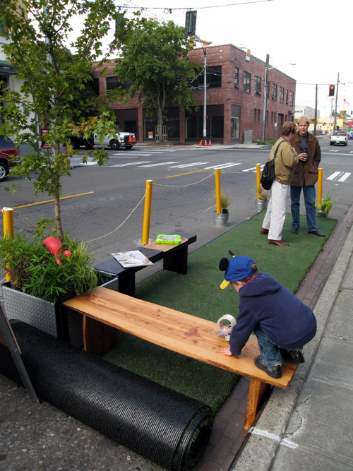 It is generally agreed that parking spaces are meant for parking cars, but a local landscape firm, The Berger Partnership, wondered what would happen if people started thinking about them differently.