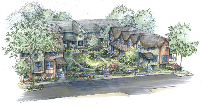 Most parking is underground, with foot and bike trails throughout the neighborhood. It will have bus shelters and connect to a nearby bike trail. A 5,200-square-foot community clubhouse, three acres of open space and garden courtyards are intended to help create a sense of community.