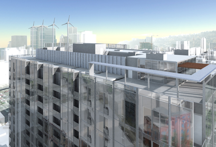 When you think about the first American city to have a building with wind turbines on it, a windy city like Chicago might come to mind. But a Portland project is aiming to be one of the first buildings in the country to actually build them.