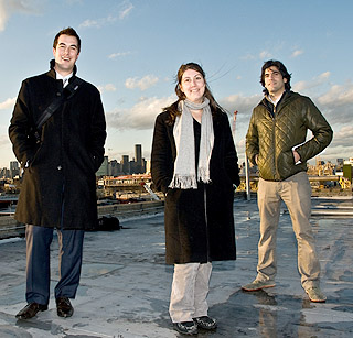 Photo by Karam Puri Eric Haley, Jenn Nelkin and Viraj Puri, co-founders of Gotham Greens, are installing a greenhouse on this Brooklyn, N.Y., rooftop to supply produce to local Whole Foods stores. Gotham Greens could be a model for integrating commercial agriculture into cities. |
