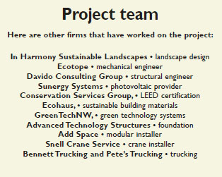 The idea of GreenFab evolved over time, crystallizing at a design charette last summer where experts gathered to discuss ideas for a demonstration project. Experts included Judith Heerwagon of J.H. Heerwagen & Associates, Christopher Meek of the University of Washington's Integrated Design Lab, Jon Alexander of Sunshine Construction, George Ostrow of Velocipede Architects and representatives from Guerdon Enterprises of Boise, the modular manufacturer.